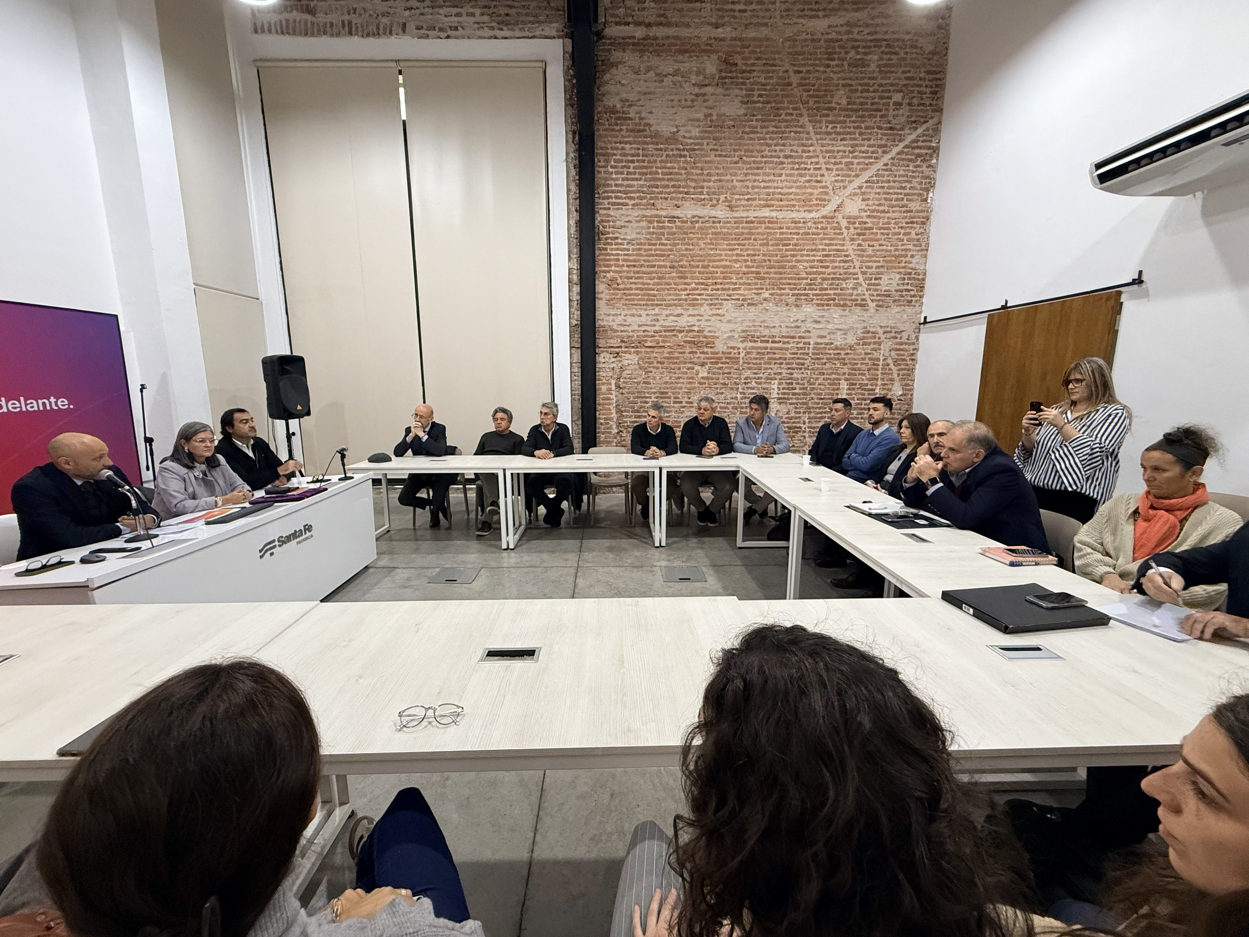 El intendente de Funes, Roly Santacroce, participó este martes por la mañana de la primera reunión de trabajo, encabezada por el ministro de Desarrollo Productivo de Santa Fe, Gustavo Puccini, para avanzar en un nuevo proyecto de transporte de pasajeros para el área metropolitana, una iniciativa histórica.